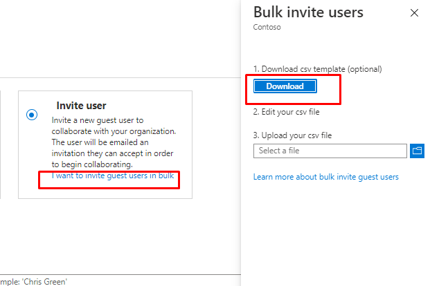 When BULK inviting users, You must add to all users Email Address and Redirection URL and You can optionally add customized message that will be send via Email