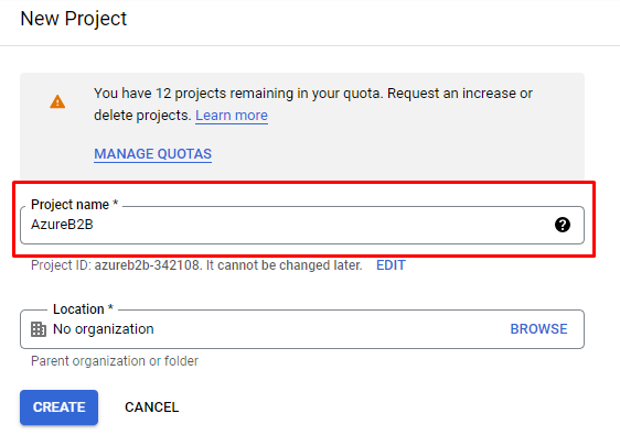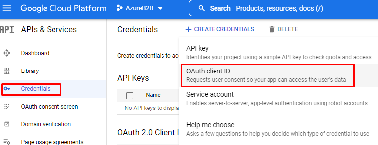 First, create a new project in the Google Developers Console to obtain a client ID and a client secret that you can later add to Azure Active Directory (Azure AD).