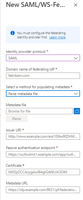 Federation with a SAML/WS-Fed identity provider (IdP) for B2B - Azure AD
