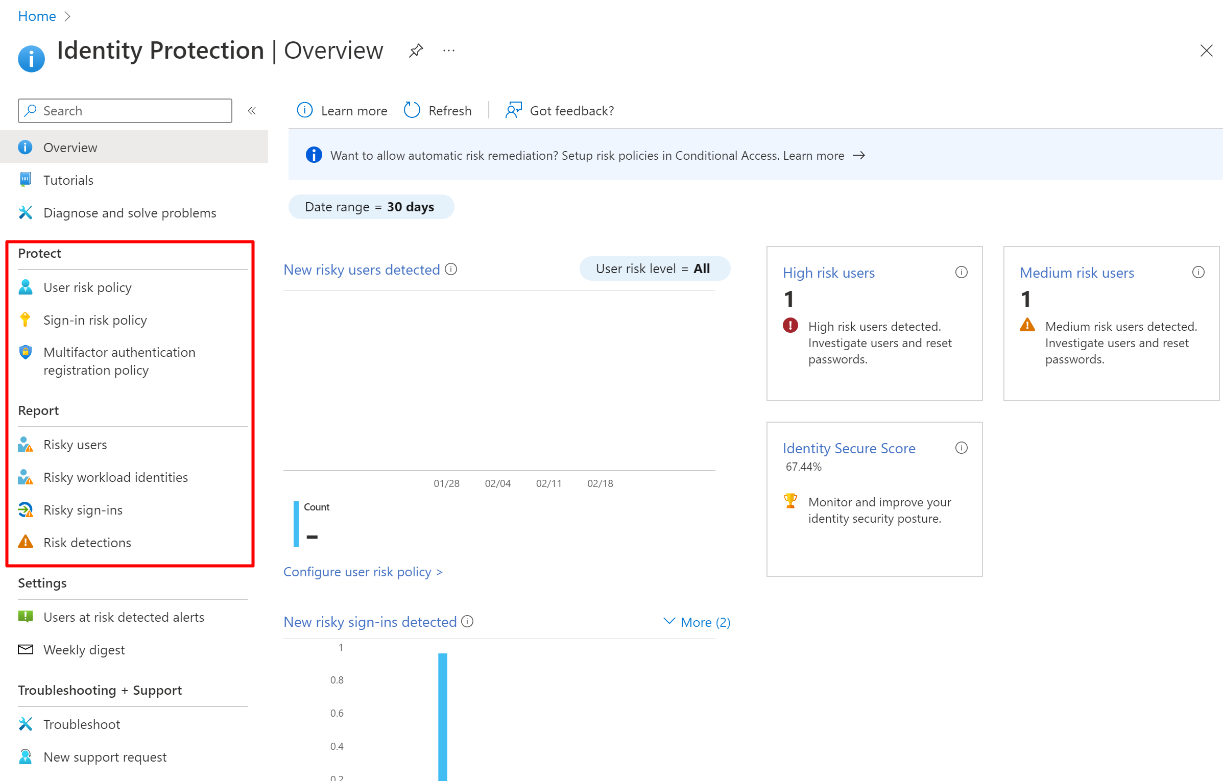 Identify and remediate security risks related to Azure AD Identity Protection