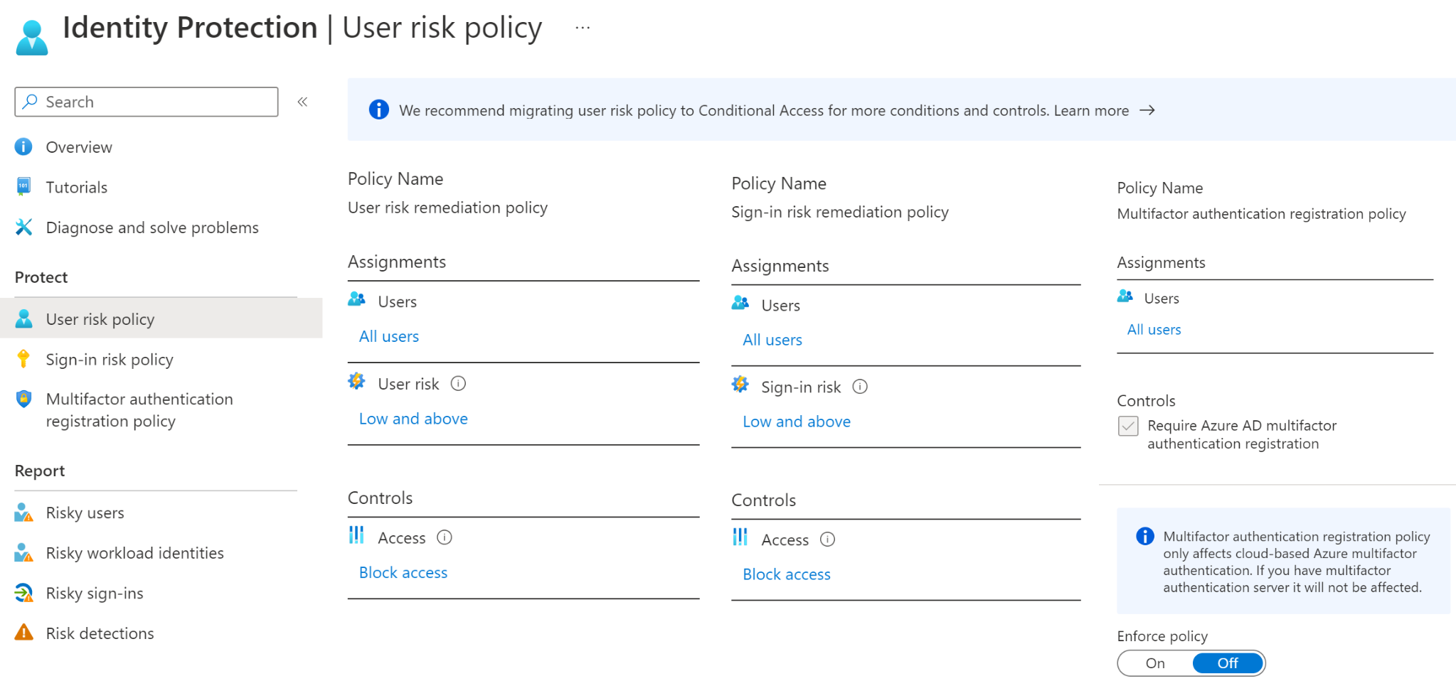And finally now when you know where you can find those Risk policies, you need to know that you can migrate them to Conditional Access.