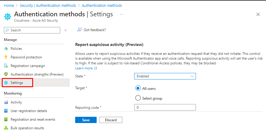 If a user receives an authentication request that they did not initiate, they can flag it as suspicious. When utilizing the Microsoft Authenticator app or making voice calls, you have access to this control. Reporting questionable activity increases the user's risk. The user may be blocked if they are subject to risk-based Conditional Access restrictions.