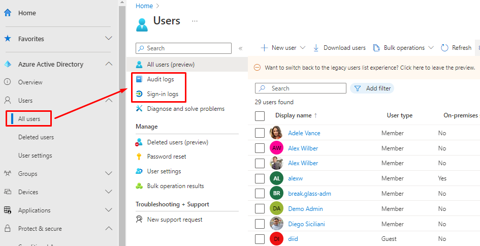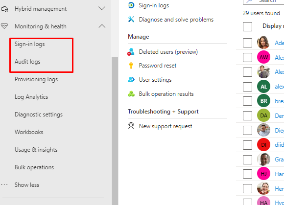 So, now you have those logs, what should you do with them? You can find the Sign-in and Audit logs under Users