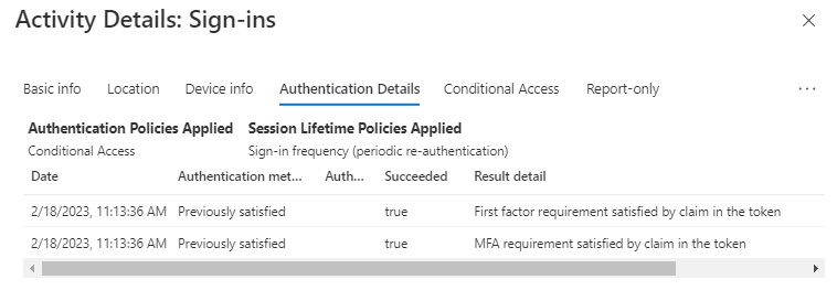 If we look the user under Sign-in logs, you can in example see the authentication details
