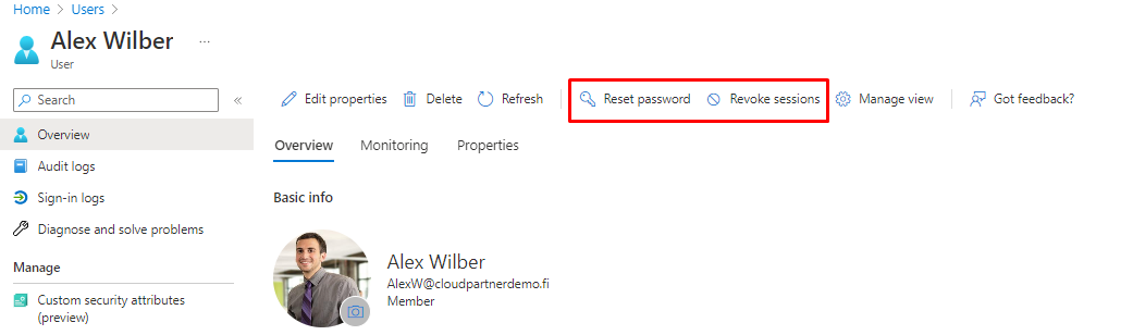 # Disable the user in Azure AD Set-AzureADUser -ObjectId alexw@cloudpartnerdemo.fi -AccountEnabled $false # Revoke the user's Azure AD refresh token Revoke-AzureADUserAllRefreshToken -ObjectId alexw@cloudpartnerdemo.fi # Disable the user's devices (if needed) Get-AzureADUserRegisteredDevice -ObjectId alexw@cloudpartnerdemo.fi | Set-AzureADDevice -AccountEnabled $false