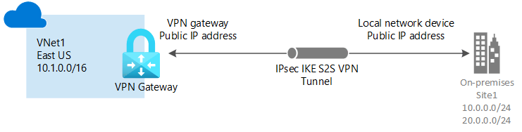 A Site-to-Site (S2S) VPN gateway connection is a connection over IPsec/IKE (IKEv1 or IKEv2) VPN tunnel. S2S connections can be used for cross-premises and hybrid configurations. A S2S connection requires a VPN device located on-premises that has a public IP address assigned to it.