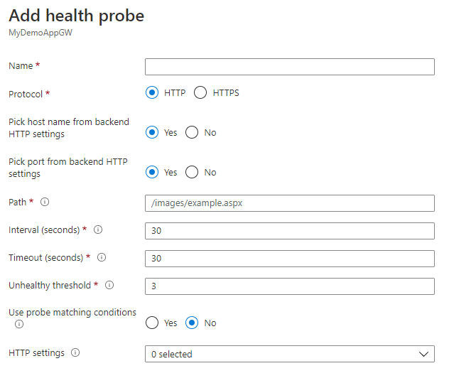 | Name | Name of the probe. This name is used to identify and refer to the probe in back-end HTTP settings. |