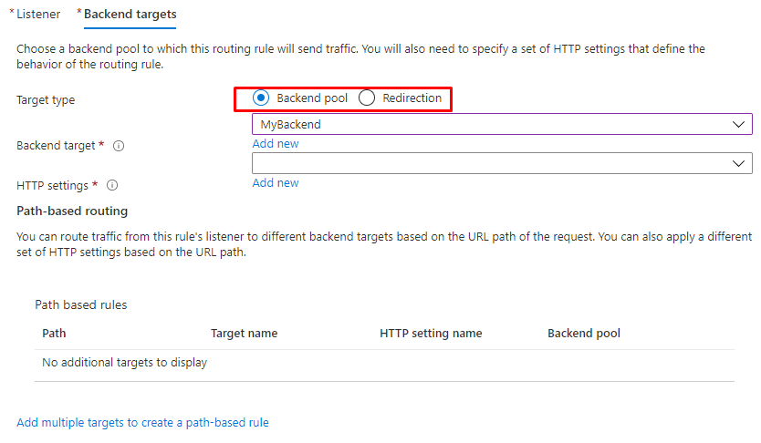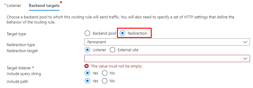 | Port | If defined, this is used as the destination port. Otherwise, it uses the same port as the HTTP settings that it is associated to. This property is only available in the v2 SKU |