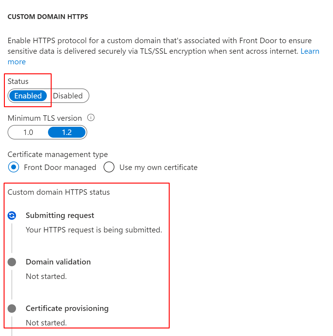 Now you will enable the HTTPS and certificate request is pushed forward, it will take time, just have patience.