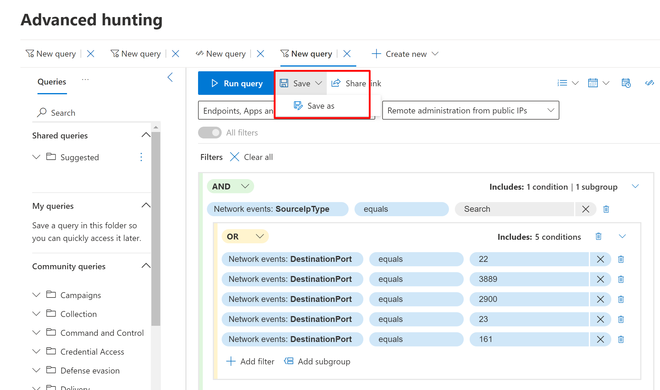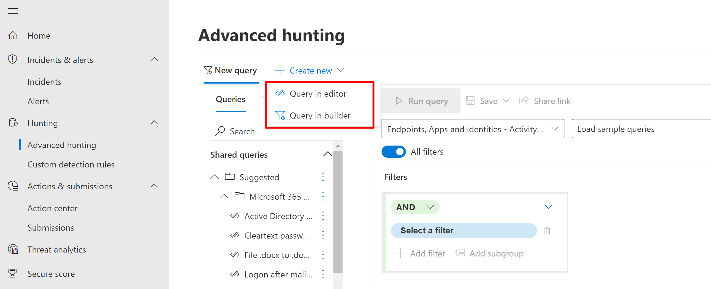 Build queries using guided mode in Microsoft 365 Defender advanced hunting