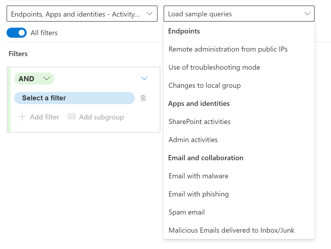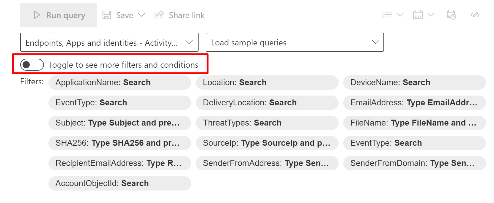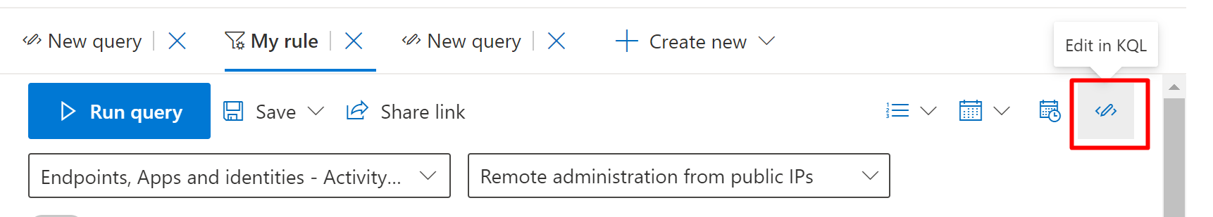 Here you can see the different options, query builder works for even the not that KQL sawy people.