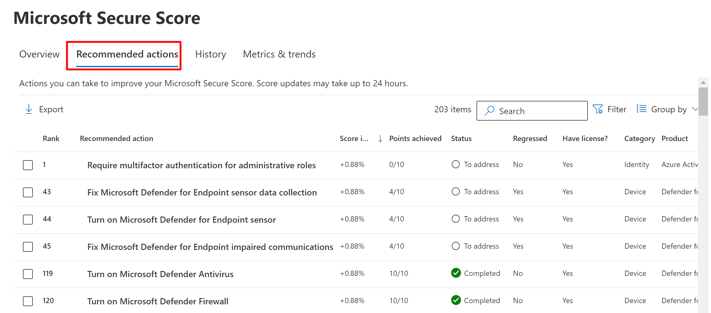 Secure Score currently has recommendations for the following products: