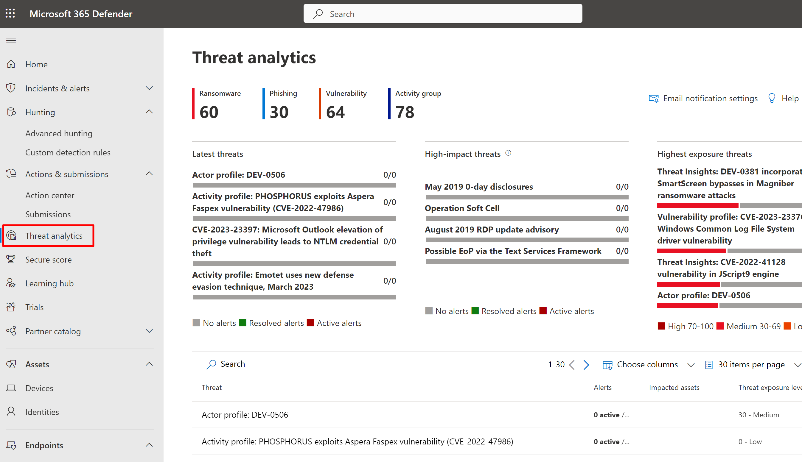 View the threat analytics dashboard