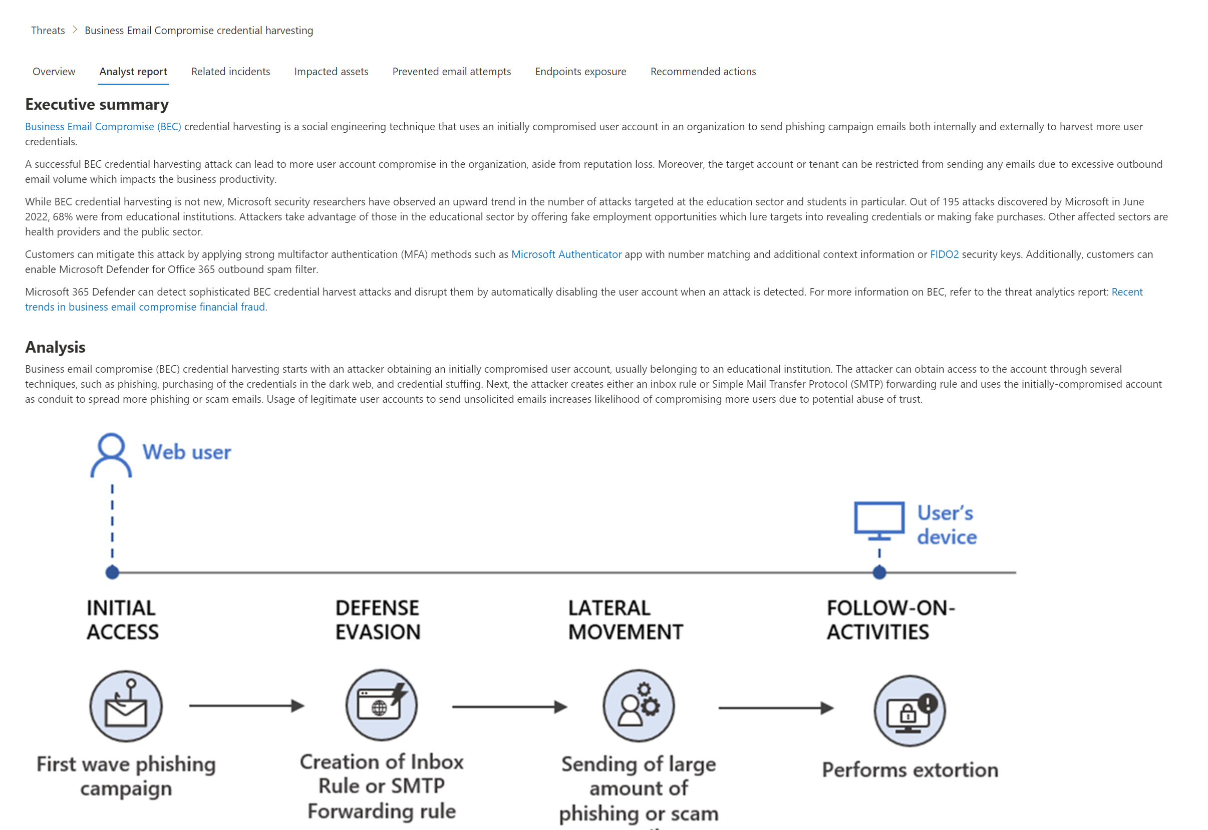 Each threat analytics report provides information in several sections: