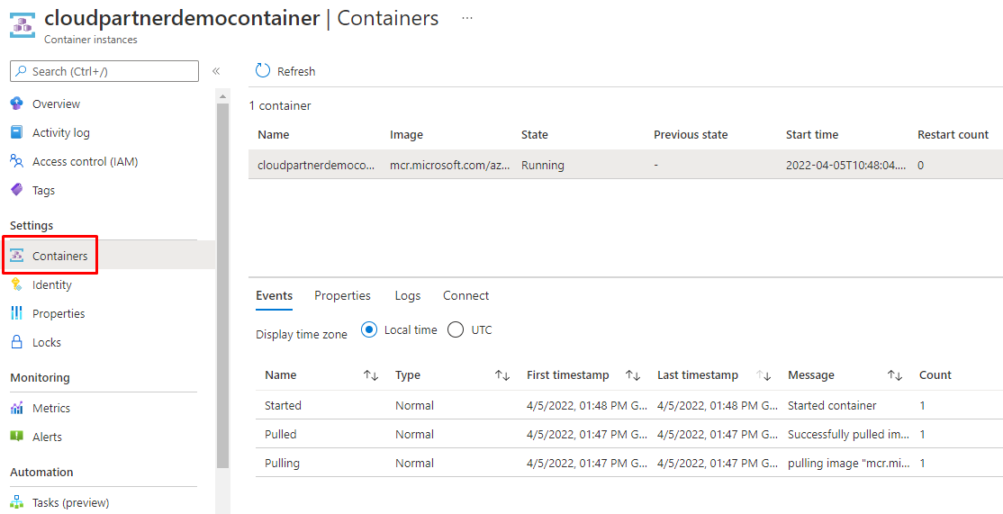 - Azure Container Instances enables exposing your container groups directly to the internet with an IP address and a fully qualified domain name (FQDN). When you create a container instance, you can specify a custom DNS name label so your application is reachable at customlabel.azureregion.azurecontainer.io.
