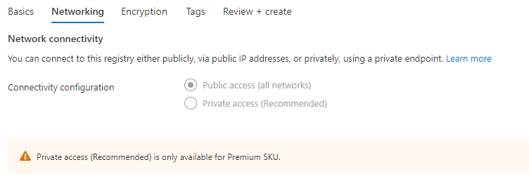 But the private access is only available for Premium SKU, I don't know why this isn't mentioned in the pricing.