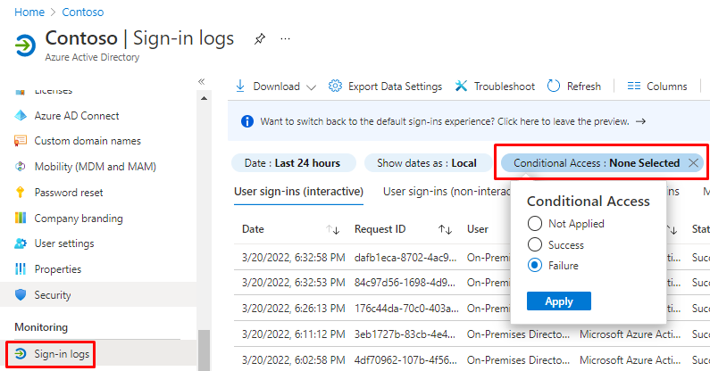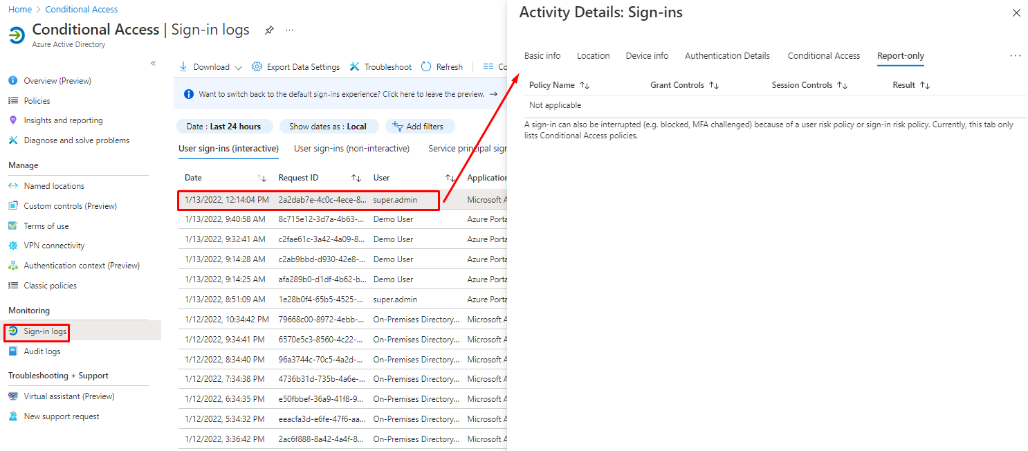 If You want to access the logs for reporting, they can be found under sign-in logs.