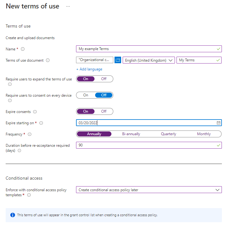 Terms of use gives the CA users an choice to accept the terms You provide. Excellent feature for governance.