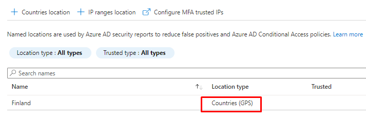 Conditional access support GPS locations, for this have to enable MS authenticator location.