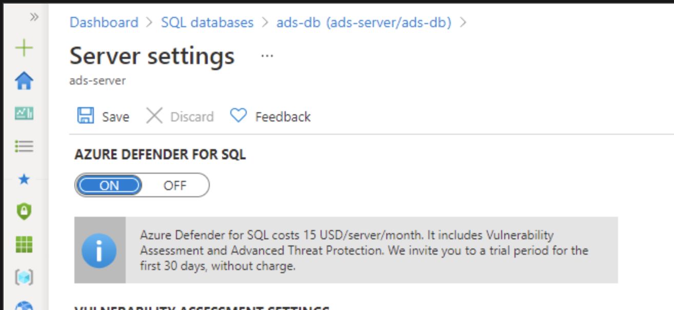 Azure Defender for SQL feature detects potential threats as they occur and provides security alerts on anomalous activities. Users can explore these suspicious events using the auditing feature, and determine if the event was to access, breach, or exploit data in the database. Users are also provided a security overview that includes a vulnerability assessment and the data discovery and classification tool. Threat intelligence enriched security alerts are triggered when there's: - Potential SQL injection attacks - including vulnerabilities detected when applications generate a faulty SQL statement in the database