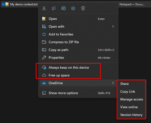 And you can free up the space at any moment and to remove all offline copies of the files. You can also share and see those shares directly from your machine.