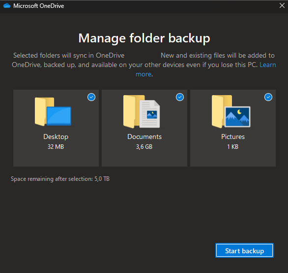 I'm having difficulties on choosing the best feature in OneDrive, would it be the the cloud-only feature or the Backup your important files. If thinking about the cloud-only feature, you can keep the content in the cloud and download it if needed. In example when you watch a video and stop it to 5min 15secs, only that content will be downloaded to your machine.