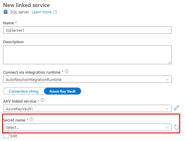 | : Azure Data Factory linked services should use Key Vault for storing secrets | To ensure secrets (such as connection strings) are managed securely, require users to provide secrets using an Azure Key Vault instead of specifying them inline in linked services. | 127ef6d7-242f-43b3-9eef-947faf1725d0 |