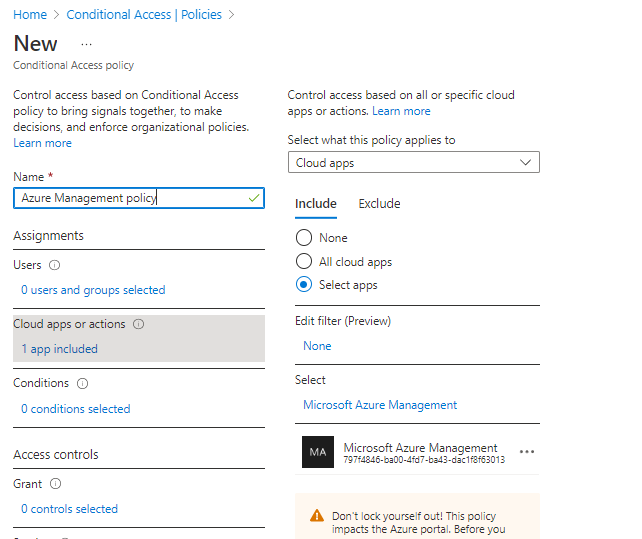 Cloud apps, actions, and authentication context in Conditional Access policy - Azure Active Directory - Microsoft Entra