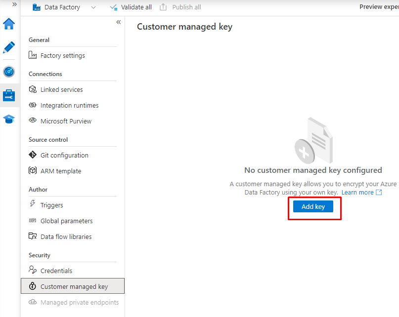 Quick tip! You have to encrypt the whole Data factory before adding any Linked services or Pipelines.