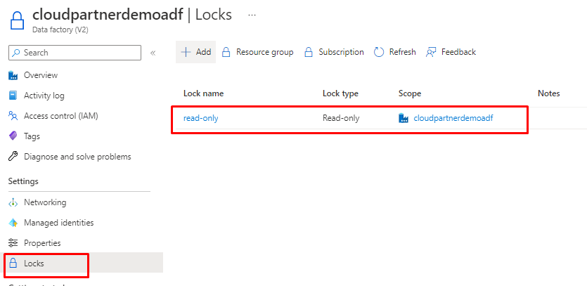 Use resource locks to prevent accidental deletion or modification of critical Data Factory resources.