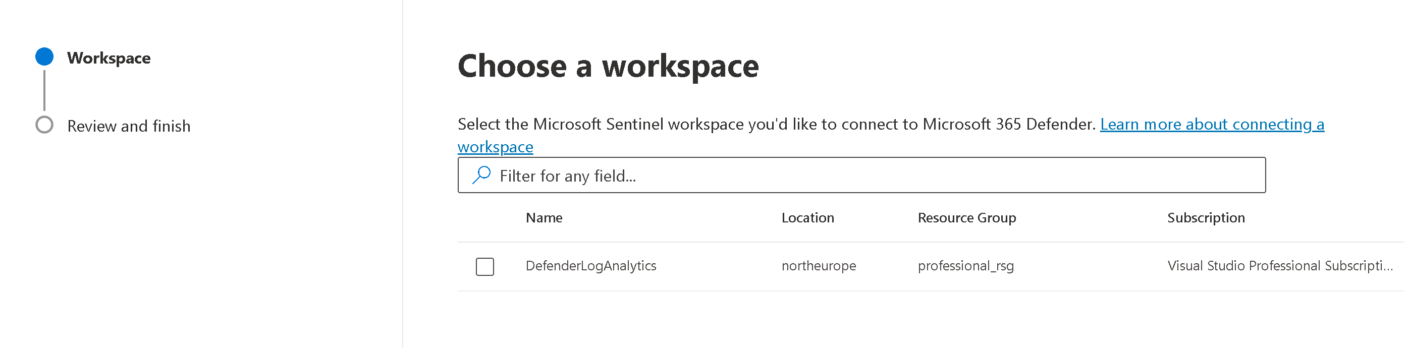 Then you can continue the process and choose that workspace, you will be displayed what to expect when the process is done.