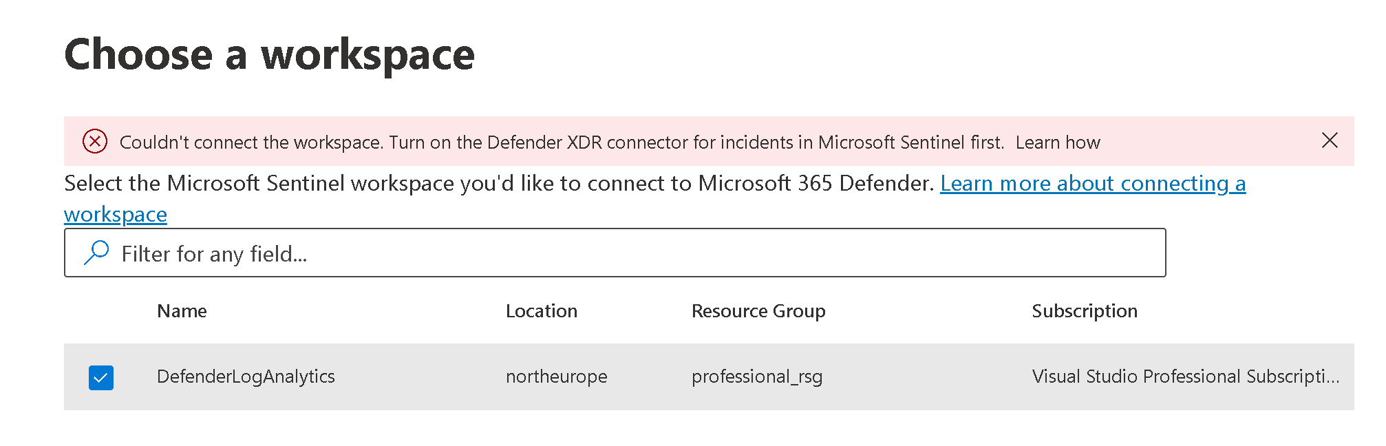 If everything isn't correct, you will be displayed with an error that you can correct from Sentinel side