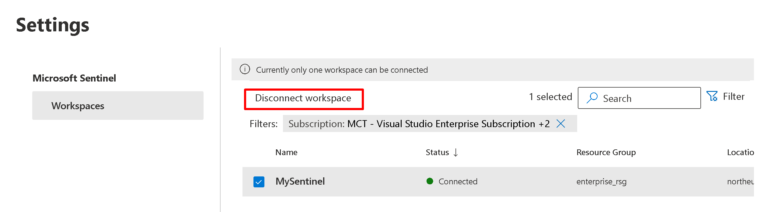 Click the connect a workspace on the main page and choose a workspace, only one is supported.