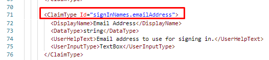 contoso.com. For more information, see Set up direct sign-in using Azure Active Directory B2C. - Under Identity provider claims mapping, select the following claims: