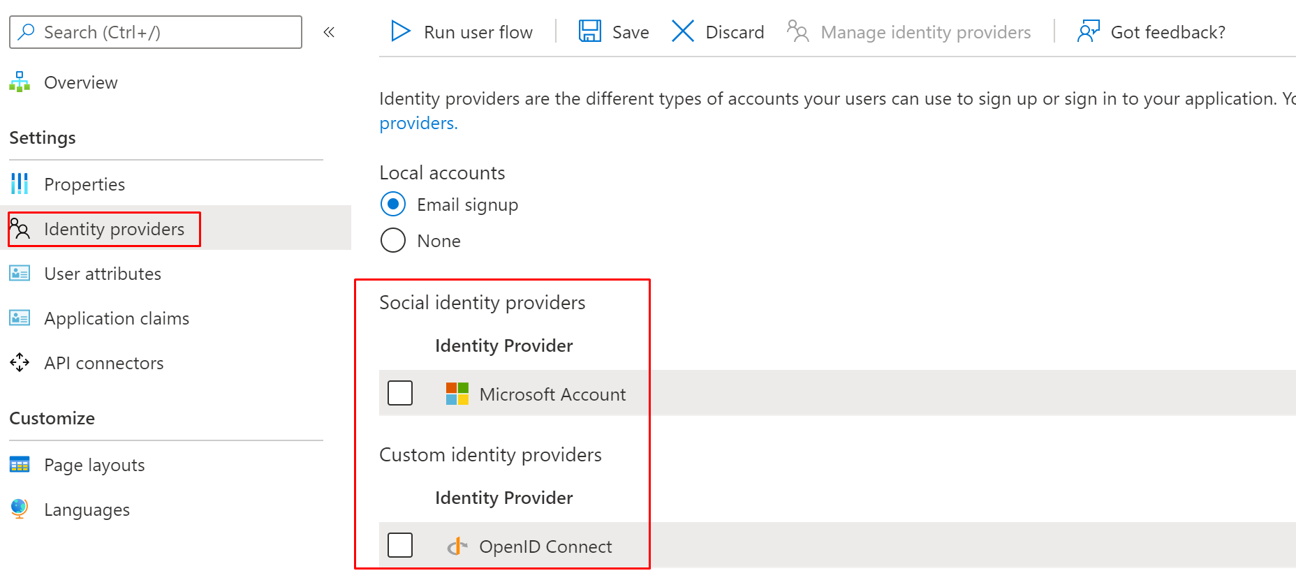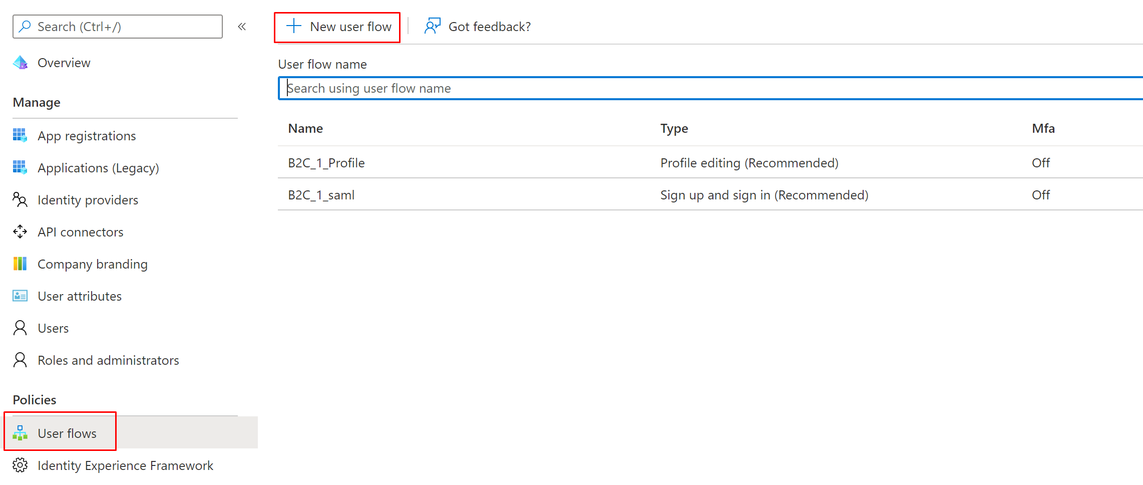 Once done add them both as identity providers to user flows. In my example I will use the default flows only.
