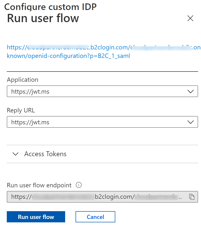 Then save and you run your flow from "Run user flow" it will try your journey (yes, journey)