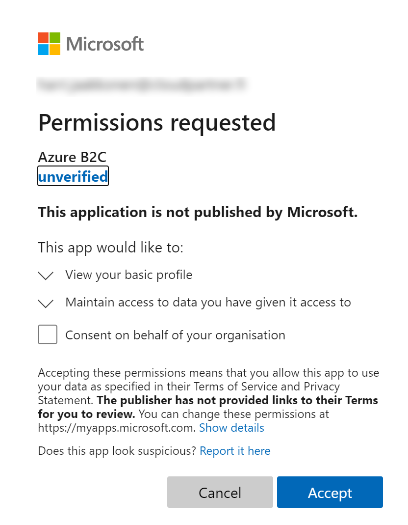 When you login, you will be greeted with the consent from your Azure AD and the token is created.