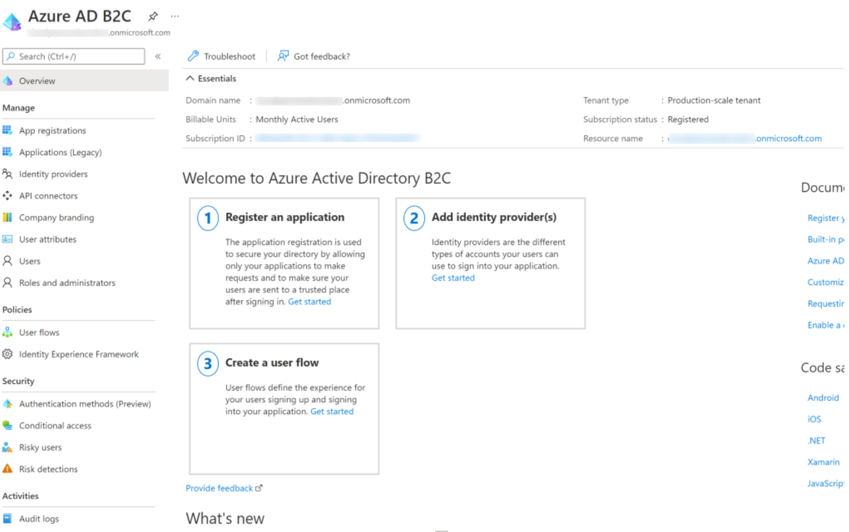 Creating a B2C tenant is really straight forward, you create a resource and find Azure B2C, choose your B2C name tenant name and create.