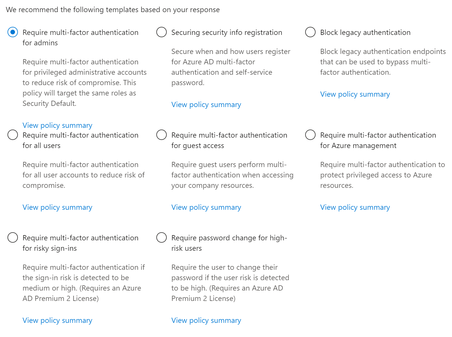 You can select templates for Identities to verify and secure each identity with strong authentication across your entire digital estate.