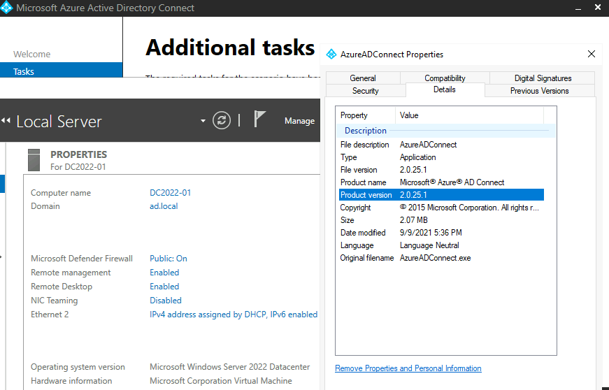 Windows Server 2022 has AAD Connect version 2.0.25.1 installed by default.
