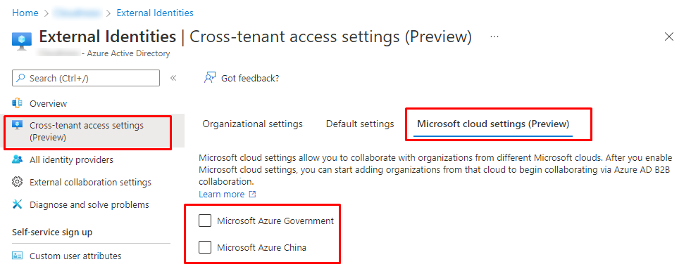 Microsoft cloud settings let you collaborate with organizations from different Microsoft Azure clouds. With Microsoft cloud settings, you can establish mutual B2B collaboration between the following clouds: